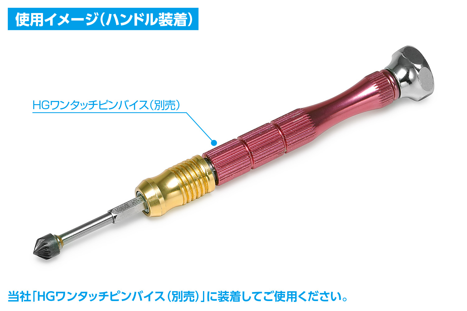 ・ハンドルは別売です。当社「HG ワンタッチピンバイス(単品)」、もしくは、「HGワンタッチピンバイスセット」付属のハンドルを別途ご用意ください。