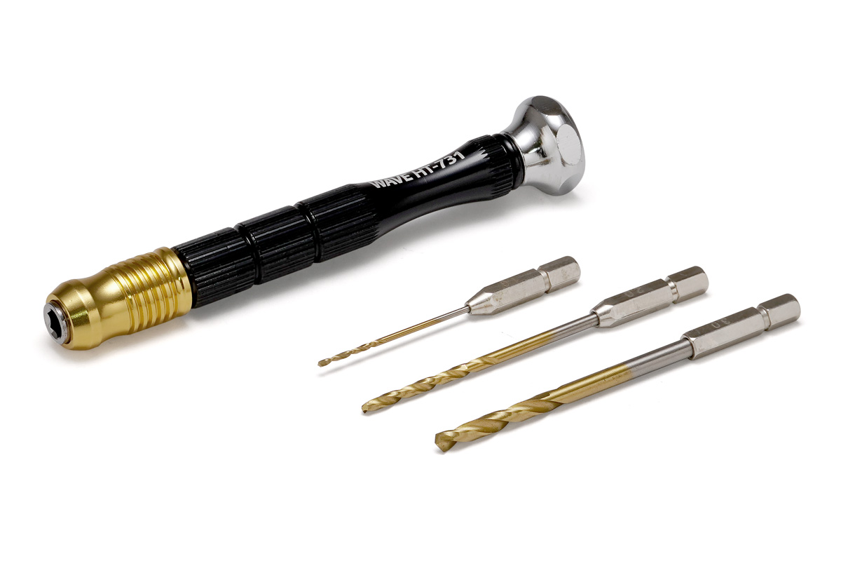 使用頻度の高いサイズの専用ドリル刃3本(1.0/2.0/3.0mm)が付属し、すぐに作業が始められます。ドリル刃の表面にはチタンコーディングが施されており、切削性能が長持ちします。